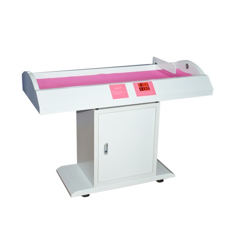 沃申WS-H3002型(带底柜)采用更长的身高测量床,高精密的大称量传感器,称量范围可达0-50kg,称量同样准确稳定。底柜与秤体无缝衔接,简洁一体化设计;柜子内部大容量空间,可储存婴儿健康检测相关的文件、记录册、医疗用品等。